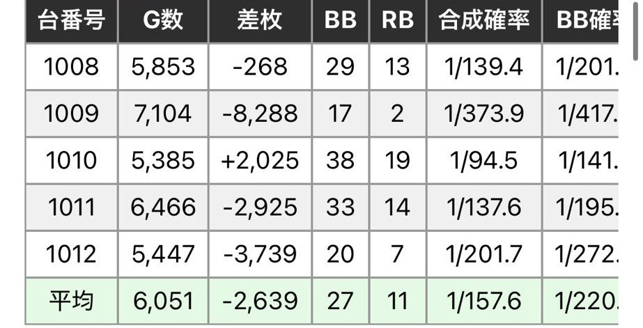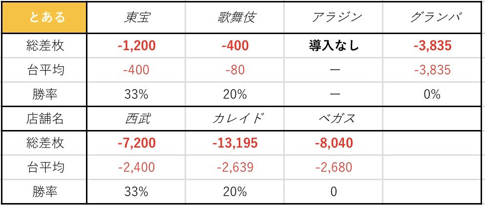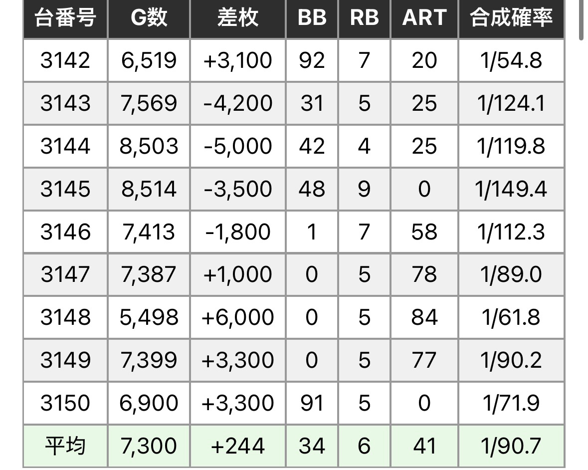 場所もメインの1番良い島をもらって9台導入です。他店舗がマイナスを並べる中でプラスかつ勝率もそこそこ良いです。