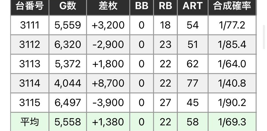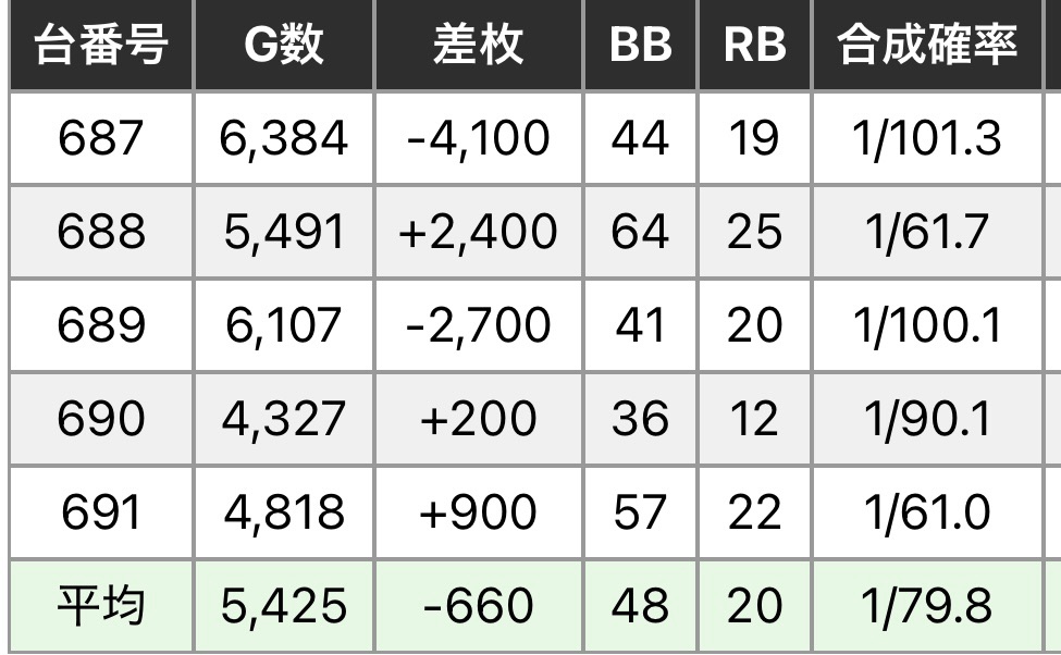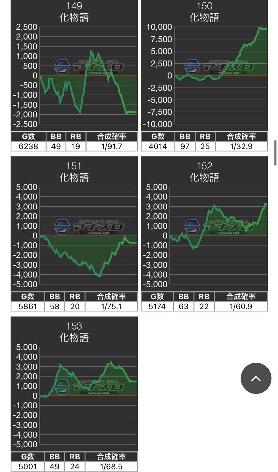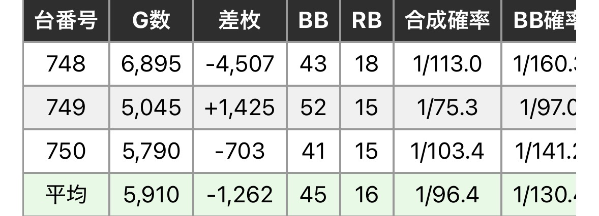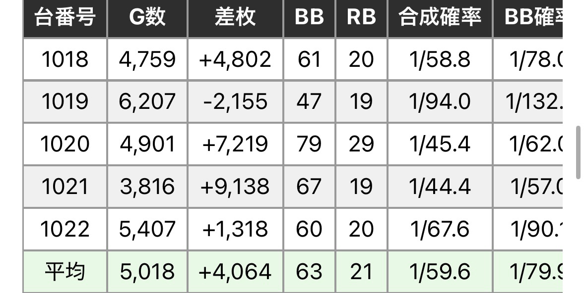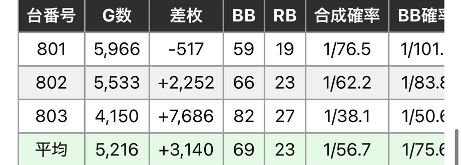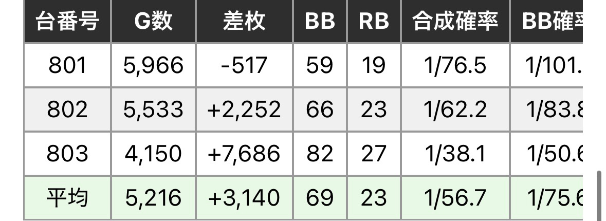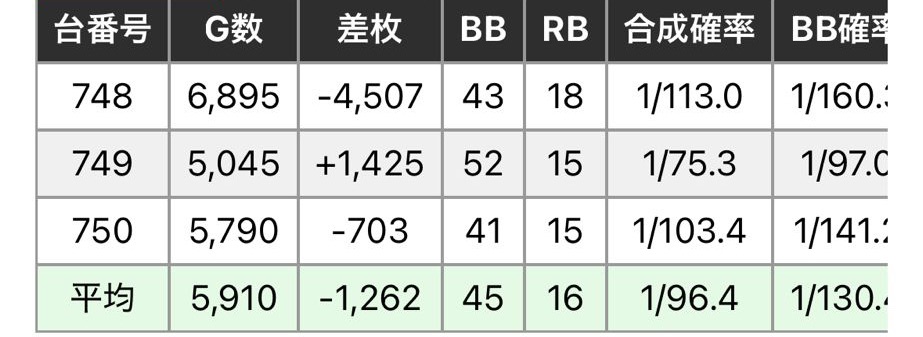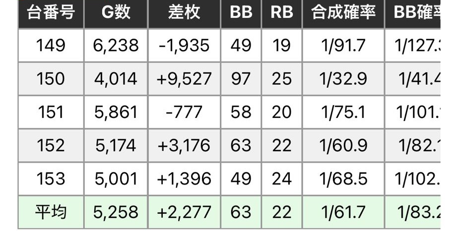 8のつく日は強イベント日ということもあってか、全体結果としては強く出ています。中身的には150,152あたりはよく見えるので半分ですかね。もともとゴリゴリの全台系というよりは機種イチや1/2、1/3ベースなので、新台関係なく配分されたのかなという感じです。新台×特日は打てるというのは覚えておいていいかもしれません。
