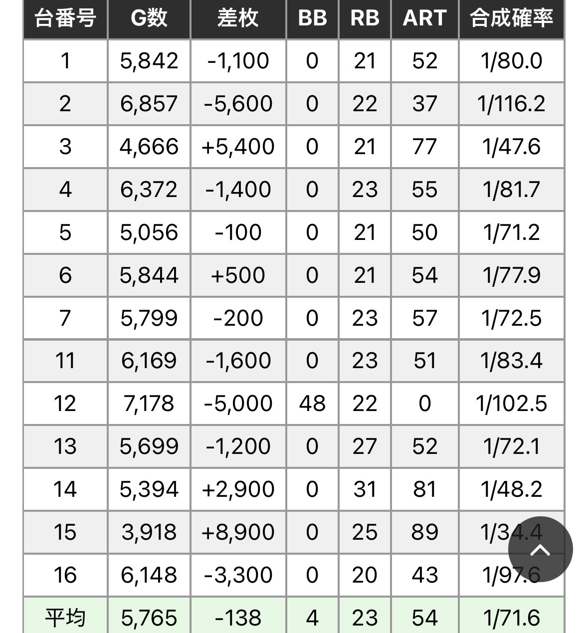 当ブログでまとめ記事を書き始めてから、一度も裏切りのない神店舗。誕生日でも新台でも最低1台は必ず使っていますし、なんなら全体でも好成績の確率の方が高いです。もちろん全台系というわけではないのですが、可能性のある新台や誕生日機種を打つなら間違い無くここです。14,15あたりはよく見えますね。