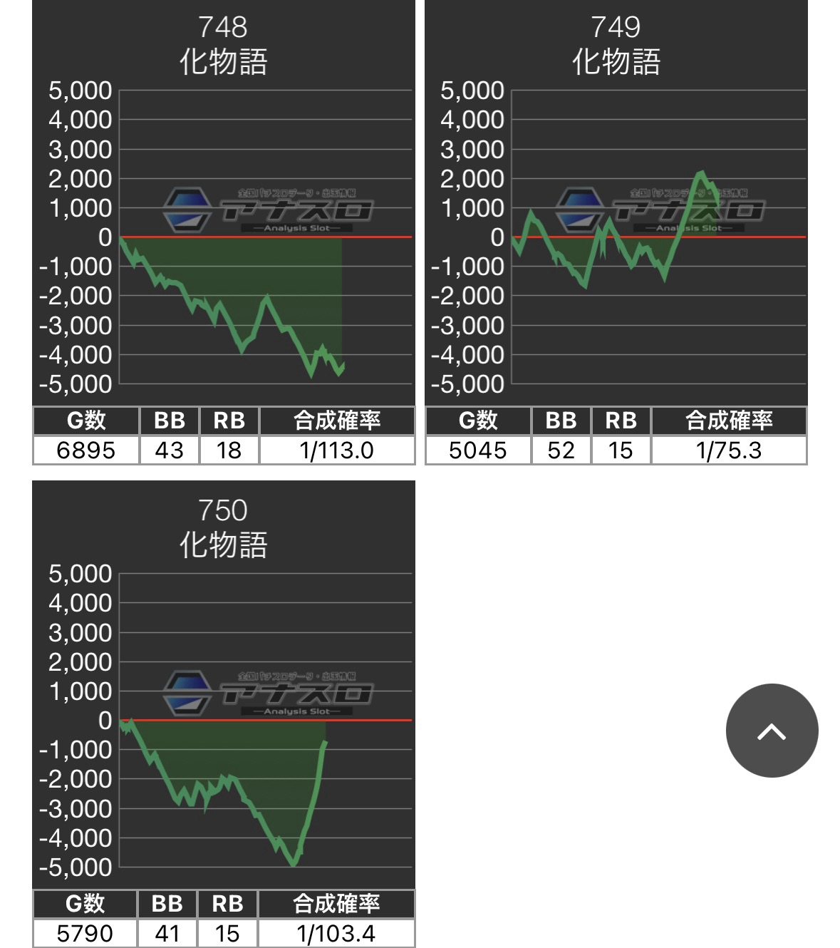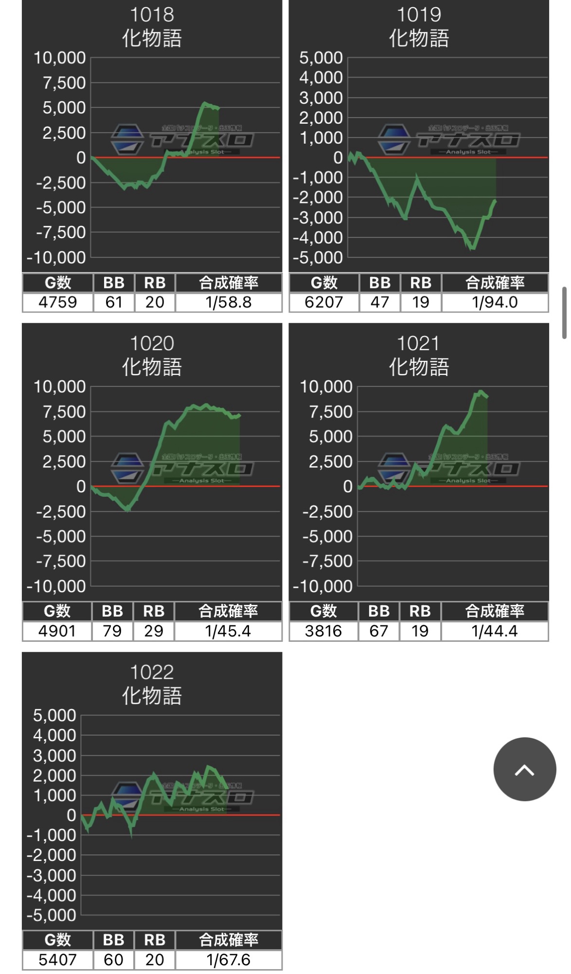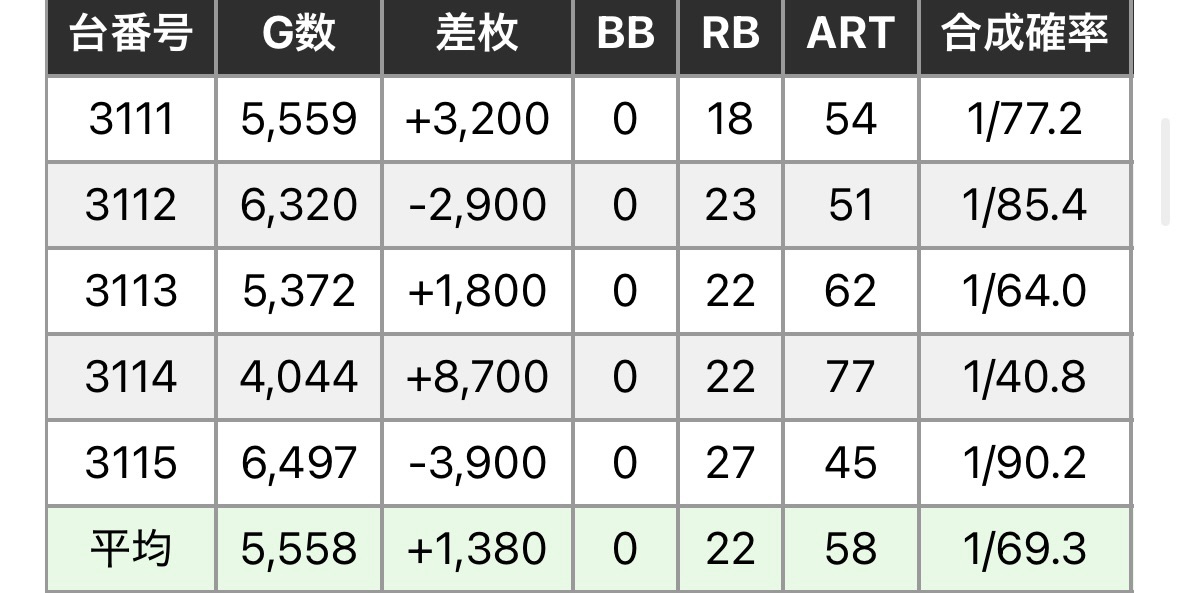 - 各データについて、マルハンはマルハンアプリ、アラジンはジャグラーオンラインアプリ、そのほかはアナスロを使用しています。