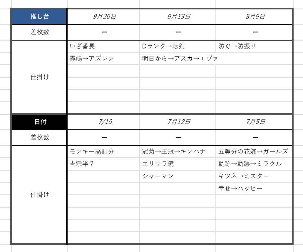 この記事ではタイトル通り、エスパス新宿歌舞伎町店の推し台は推せる時に押せ!(以降推し台)の過去データと傾向をまとめた記事となっています。