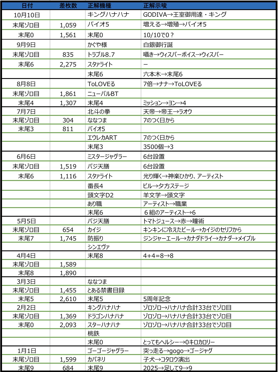 毎月の傾向としては全台系の選択機種が渋めというのがありますが、明日は前前前世とかぶっているので毎月よりは期待できると思います。だだ、派手な全にはなりにくい日といえます。