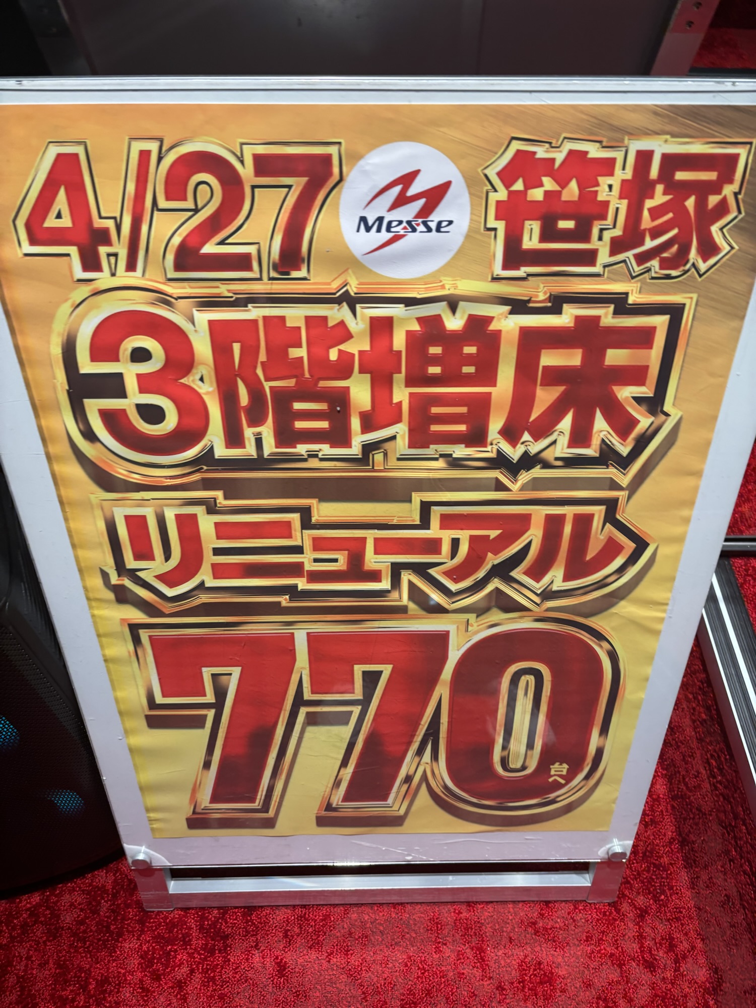 4/27、メッセ笹塚店が3階1フロアを丸々増台し、総台数770台の大型店となりました。これまではどちらかといえば周辺住民を対象にした営業だったと思うのですが,増台ということでその範囲を広げてくれるのではないか?と若干期待しています。