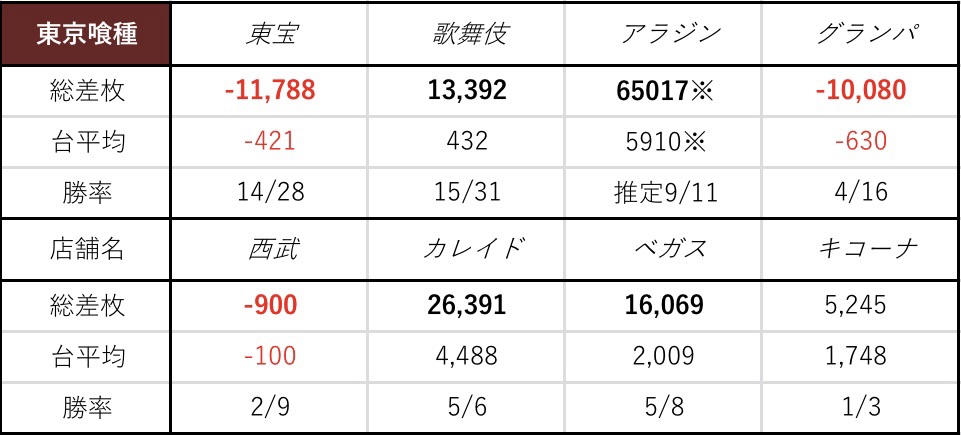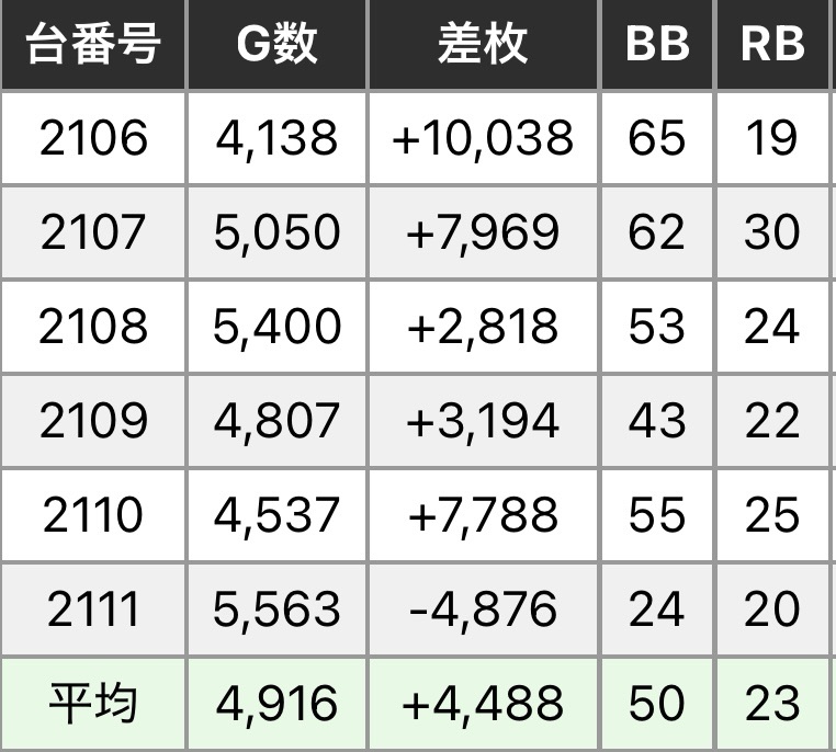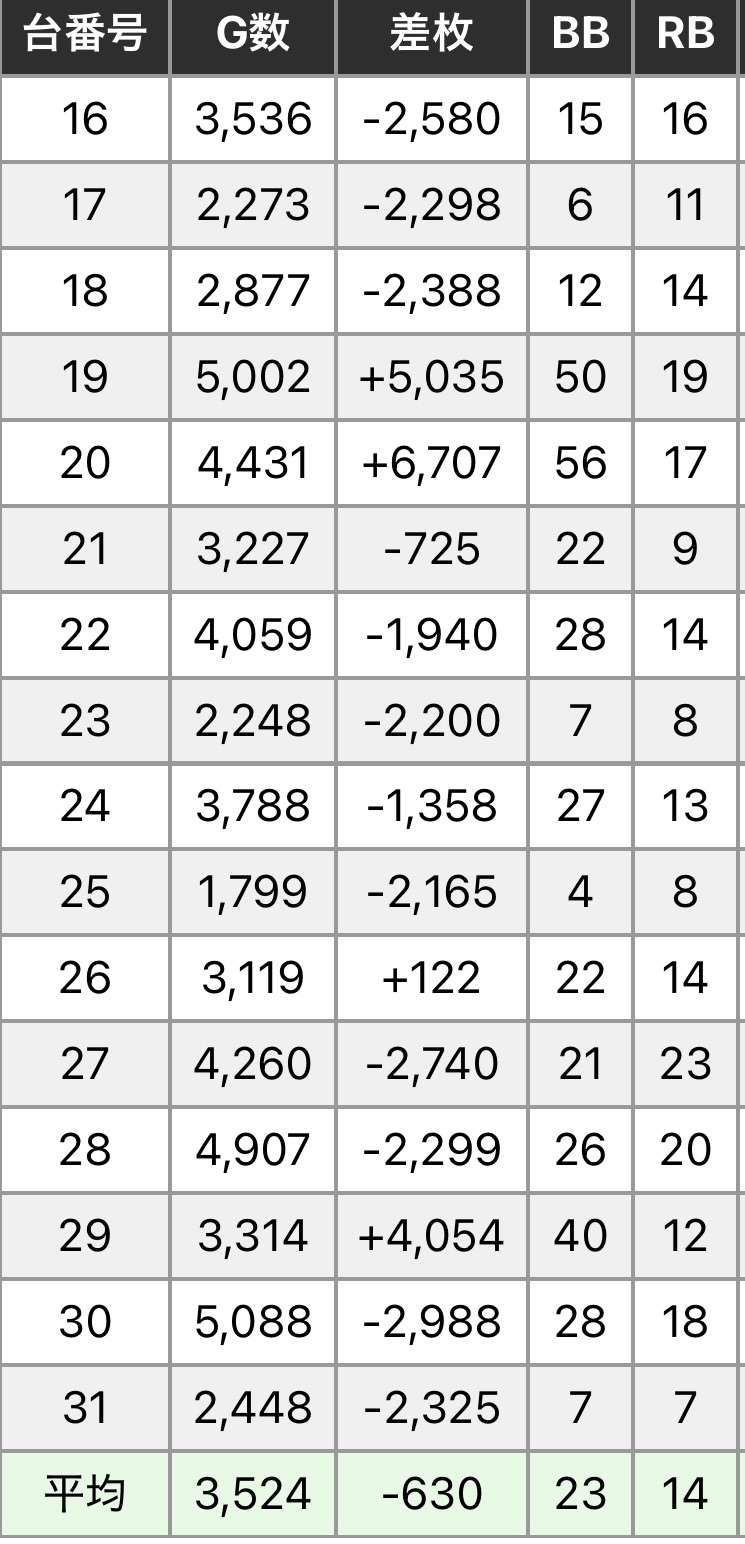 数字から見るに結構ヒキ強感もありますが、全体としては平均2000枚ほどの好成績となりました。オプチャでの発表もなかったので、設定はなかったのかなという感じではあります。