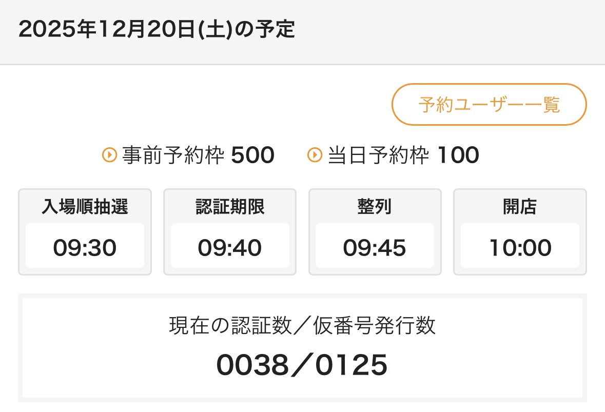 この日の抽選は120人ほど、実入場は38人なので、またしても激アツすぎる穴場となりました。