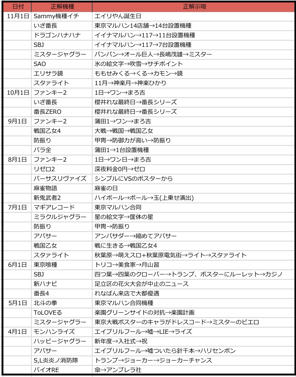 1のつく日は東日本マルハン全店の特日です。5月と7月にそれぞれ全台系を仕掛けてきているように、明日も合同機種仕掛けの可能性があります。可能性は低いので気にすることはないですが、頭に入れておいてもいいと思います。