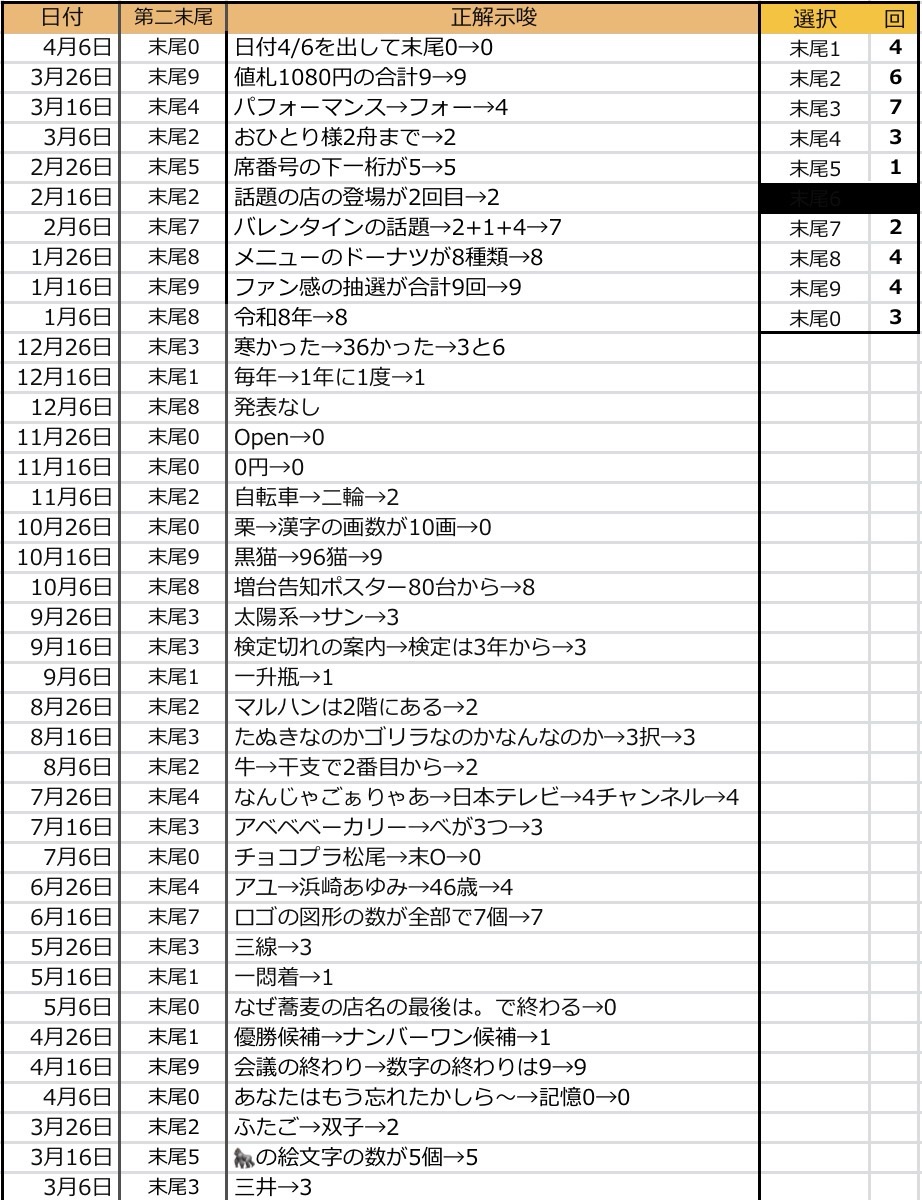 - 末尾3の選択が7回で最多